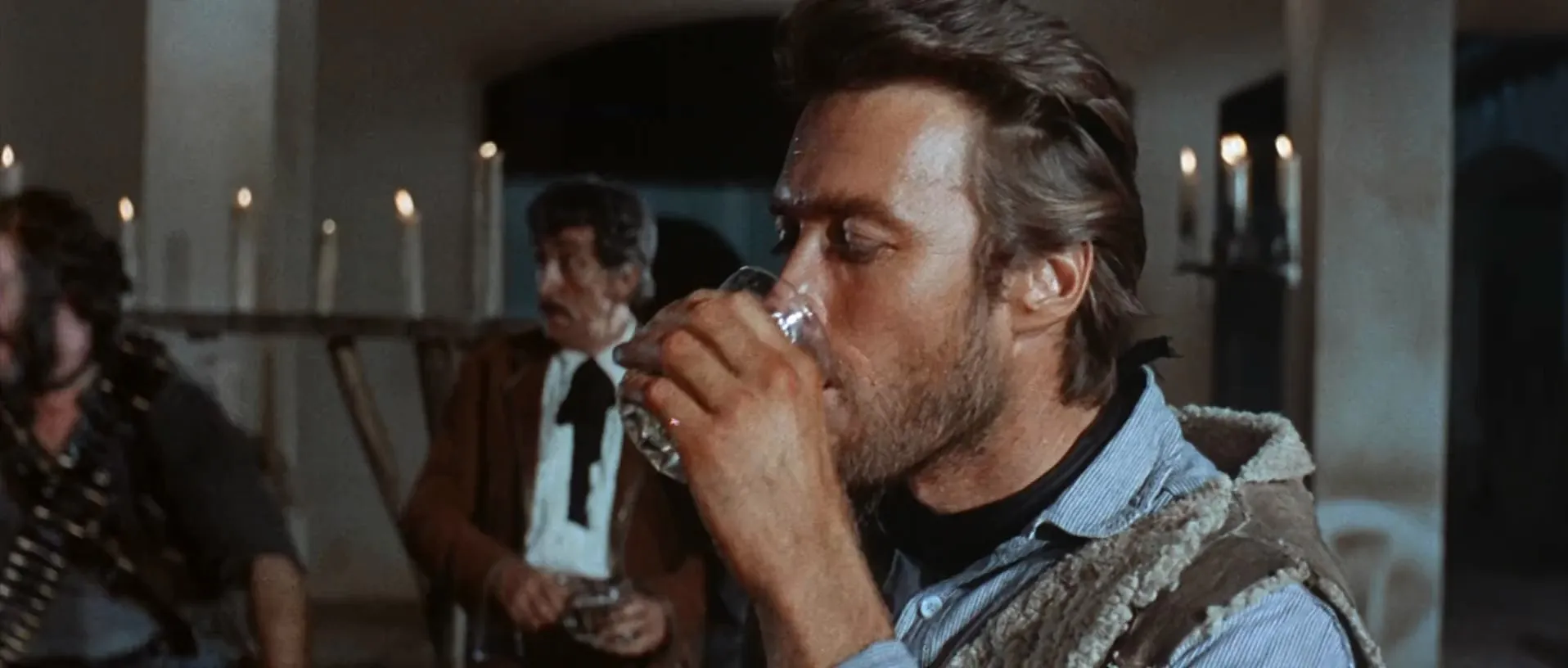 Cast: Clint Eastwood as Joe, Marianne Koch as Marisol, Gian Maria Volonté as Ramón Rojo, Wolfgang Lukschy as John Baxter, Sieghardt Rupp as Esteban Rojo, Joseph Egger as Piripero, Antonio Prieto as Don Benito Rojo / Don Miguel Rojo, José Calvo as Silvanito, Margarita Lozano as Consuelo Baxter, Daniel Martín as Julián, Benito Stefanelli as Rubio, Mario Brega as Chico, Bruno Carotenuto as Antonio Baxter, Aldo Sambrell as Rojo Gang Member, Lorenzo Robledo as Baxter Gunman #1 (uncredited), Antonio Molino Rojo as Baxter Gunman #2 (uncredited), Luis Barboo as Baxter Gunman #3 (uncredited), Juan Cortés as Cavalry Captain (uncredited), William R. Thompkins as Baxter Gunman (uncredited), Fernando Sánchez Polack as Rojo Gang Member Crushed by Wine Cask (uncredited), José Canalejas as Rojo Gang Member (uncredited), Jose Halufi as Rojo Gang Member (uncredited), Nino Del Arco as Jesus (uncredited), Antonio Moreno as Juan De Dios (uncredited), Frank Braña as Baxter Gunman (uncredited), Álvaro de Luna as Rojo Gang Member (uncredited), Lee Miller as Man at Bar (uncredited), José Orjas as (uncredited), Manuel Peña as (uncredited), Antonio Pica as Rojo Gang Member (uncredited), Julio Pérez Tabernero as Baxter Gunman (uncredited), José Riesgo as Mexican Cavalry Captain (uncredited), Umberto Spadaro as Miguel - Rojo Gunman (uncredited), Peter Tevis as The Balladeer (voice) (uncredited), Edmondo Tieghi as Mexican Soldier (uncredited), Antonio Vico as (uncredited), Luis Rodríguez as Rojo Gang Member (uncredited)