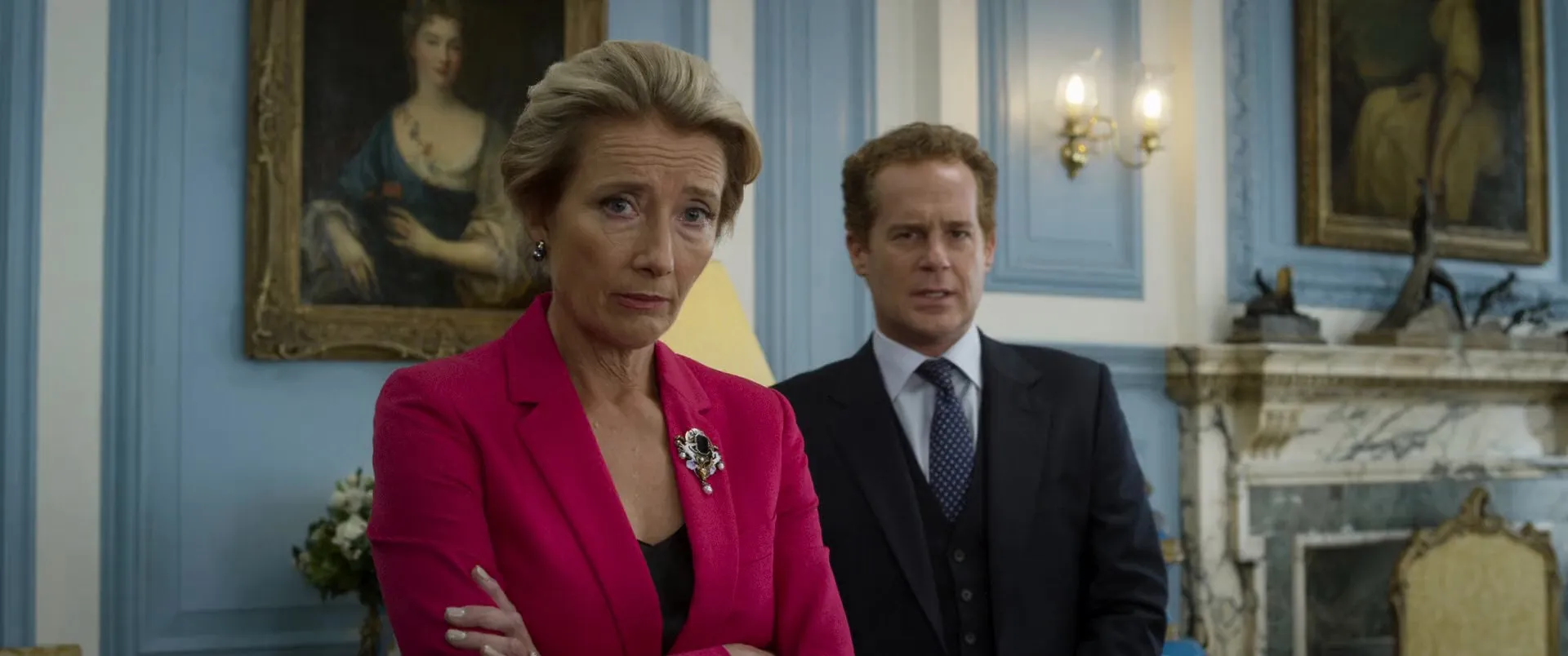 Cast: Rowan Atkinson as Johnny English, Emma Thompson as Prime Minister, Olga Kurylenko as Ophelia Bhulatova, Ben Miller as Bough, Adam Greaves-Neal as Tomlinson, Charles Dance as Agent Seven, Michael Gambon as Agent Five, Kevin Eldon as MI7 Night Duty Agent, Adam James as Pegasus, Noah Spiers as Baggaley, Kendra Mei as Ibadulla, Alfie Kennedy as Straker, Edward Fox as Agent Nine, Jasmine Brightmore as Dowling, Rua Robertson as Ridley, Nifemi Bankole as Obasanjo, Gus Brown as Headmaster, Pippa Bennett-Warner as Lesley, Matthew Beard as P, Didier Martiny as Hotel Magnifique Valet, Melody Lebeau as Hotel Magnifique Waitress, Roger Barclay as Sebastian Lynch, Irena Tyshyna as Sebastian Lynch's Companion, Dan March as Senior Waiter, Miranda Hennessy as Tara, Jack Fox as Geoffrey, Jake Lacy as Jason Volta, Jules de Jongh as Xander (voice), Amit Shah as Samir, Tibu Fortes as Kitchen Staff #1, Adrian MacKinder as Chef in Yacht, Jean-Toussaint Torre as Kitchen Staff #2, Tristam Summers as Yacht Crewman #1, Darrell Foster as Yacht Crewman #2, Maria Pavelin as French Waitress, James Pariera as Café Diner #1, Olivia Le Andersen as Café Diner #2, Emily Outred as Café Diner #3, Christophe Gasser as French Cyclist #1, Julien Romeo as French Cyclist #2, Ako Mitchell as Alvin, David Mumeni as Fabien, Maria McColgan as Woman in Bookshop Lift, Hiba Chader as Newman, James Eeles as Café Employee, Laura June Hudson as Old Lady, Jonny Sweet as Tour Guide, Daniella Bowen as Meeting Room Person #1, Paris Iris Campbell as Meeting Room Person #2, Alison Ward as Meeting Room Person #3, Alan Emrys as Tony, Neil Edmond as Driving Instructor, Pauline McLynn as Mrs. Trattner, Vicki Pepperdine as Lydia, Cavan Clerkin as Castle Guard, Eddie O'Connell as G14 Nation Diplomat #1, Junichi Kajioka as G14 Nation Diplomat #2, Chris Hayward as G4S Security Guard, Peter Singh as Officer Kohli, George Turner as Hattersley